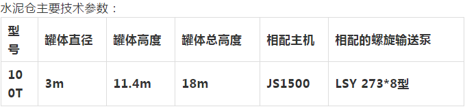 水泥倉是一種封閉式的儲存散裝物料的罐體,適合儲存糧食、水泥、粉煤灰等各種散裝物料,罐體上裝有料位系統,能夠顯示物料的位置和多少,破洞裝置可以解除物料沉積太久而造成的結實。水泥倉和螺旋輸送泵配合使用能夠把物料輸送到各個位置,該罐體安裝方便,安全可靠是各種攪拌站的理想散裝儲存罐。