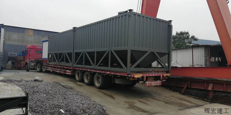 輝宏臥式水泥倉是為配合移動攪拌站而設計的一款新型水泥倉,該水泥倉內部采用緩壓結構,可有效防止水泥結拱現象,同時配合專用的助流裝置,實現水泥勻速下料,長期存放不壓實,隱藏式除塵器確保上料無粉塵。臥式水泥倉具有裝車運輸方便(不超寬不超高不超長),不受廠房高度限制,可以放在室內避免室外太高太招眼的特點。